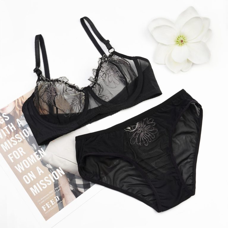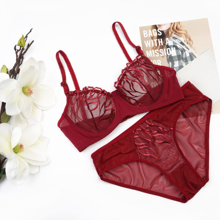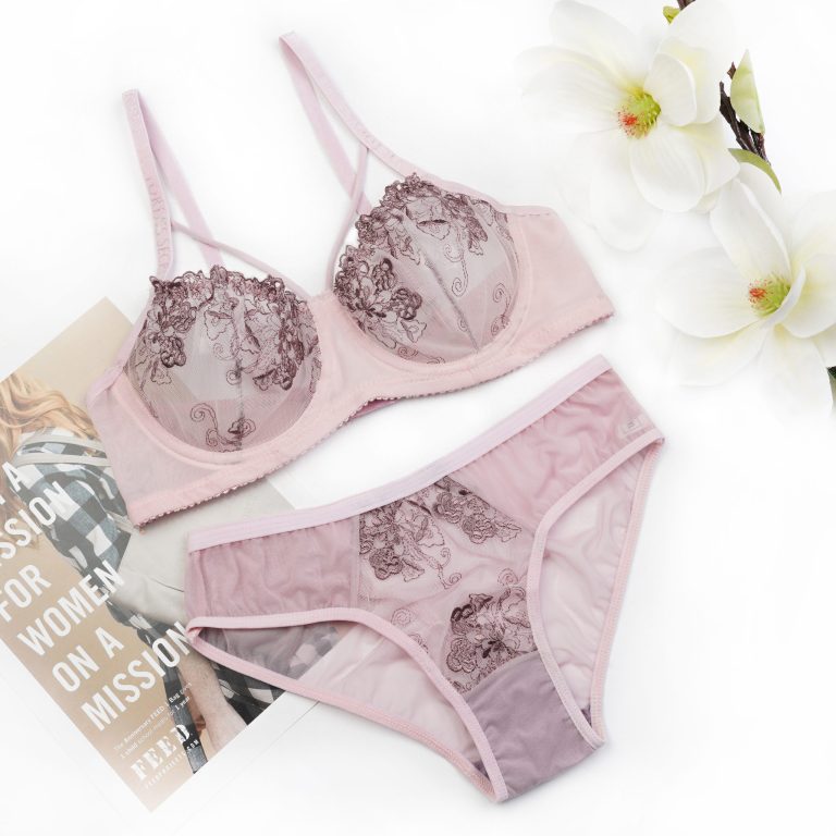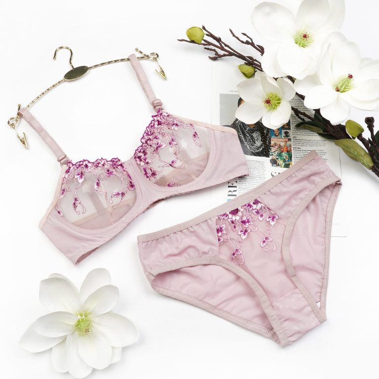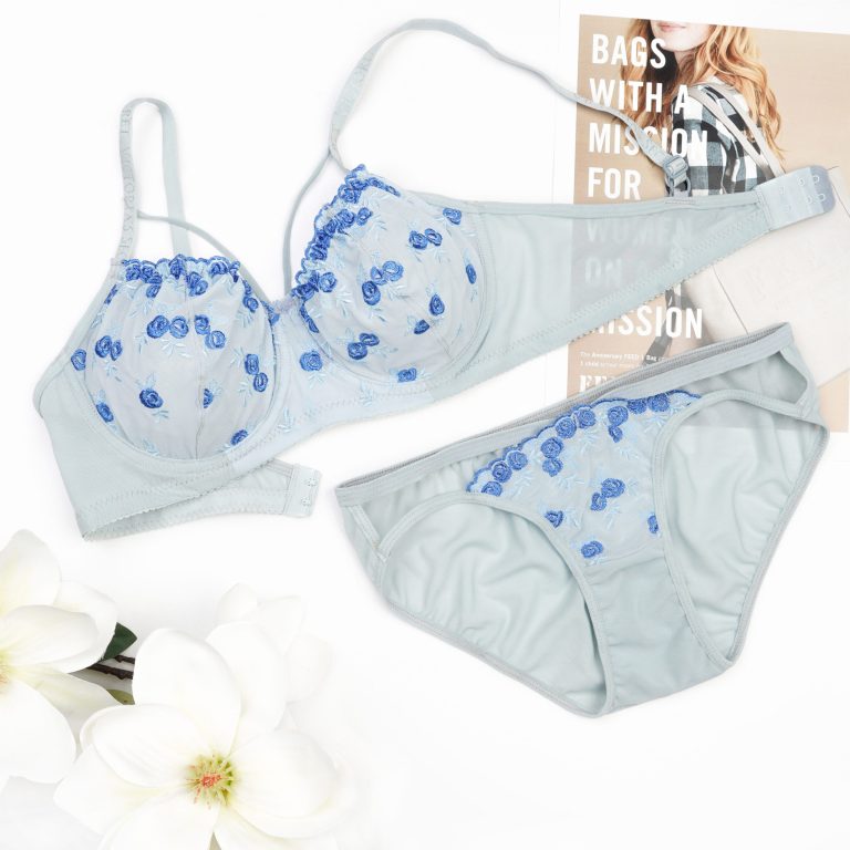 ست لباس زیر گلدوزی بدن نما آبی دلفینی طرح 1