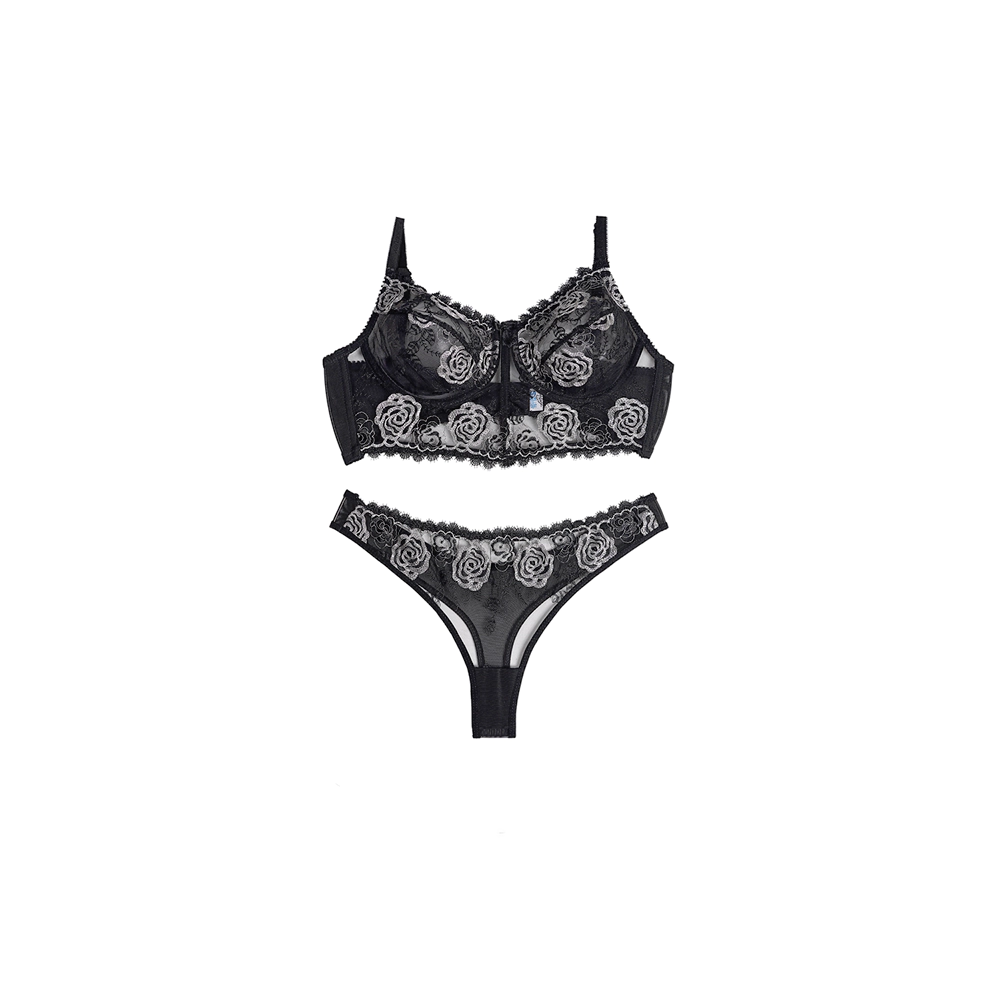 ست شورت و سوتین زنانه تورگاز طرح گلدوزی مشکی نقره ای مژه ای خفاشی نیم بلندفنردار برند شارمین