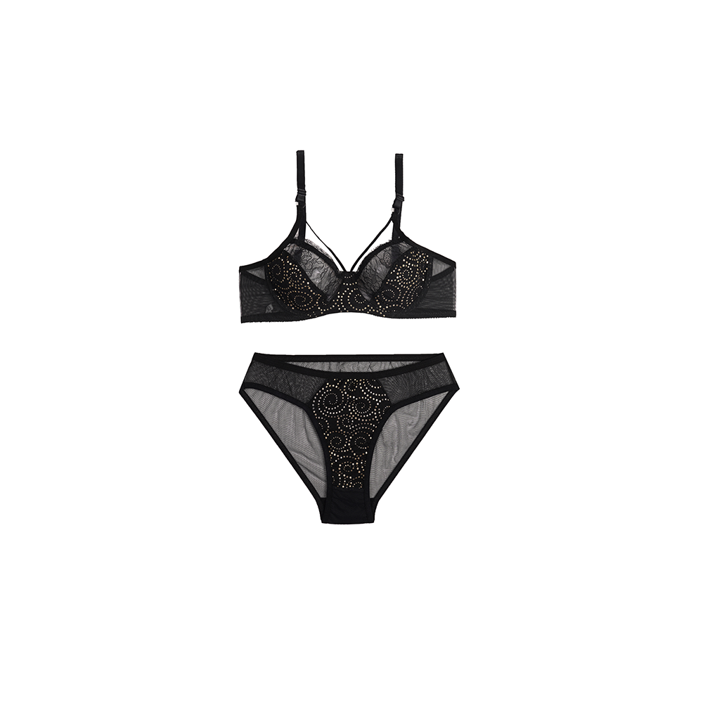ست شورت و سوتین زنانه فنردار تور مخمل طلاکوب هارنس دار برند شارمین