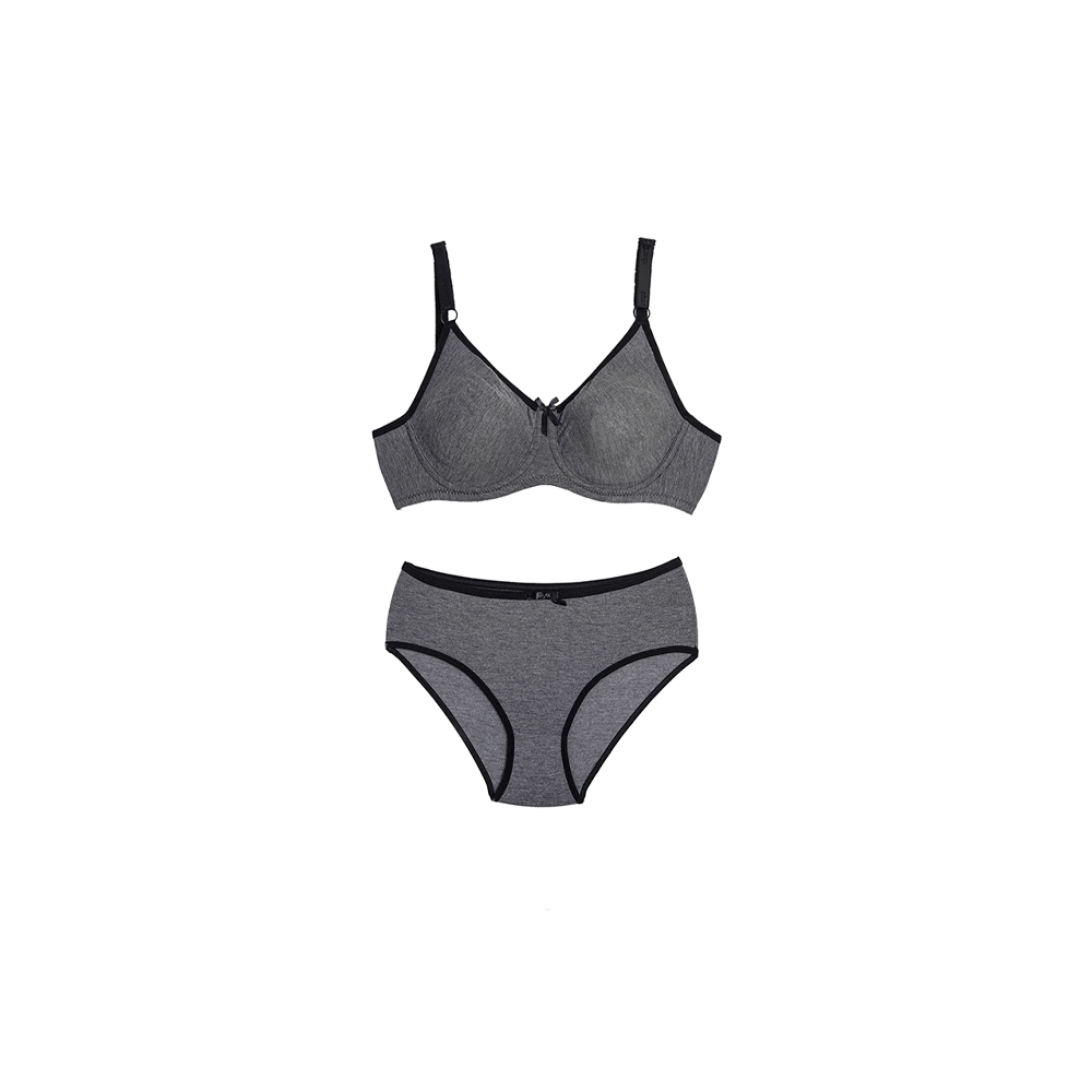 ست شورت و سوتین نخی ملانژ فنردار پرسی برند شارمین